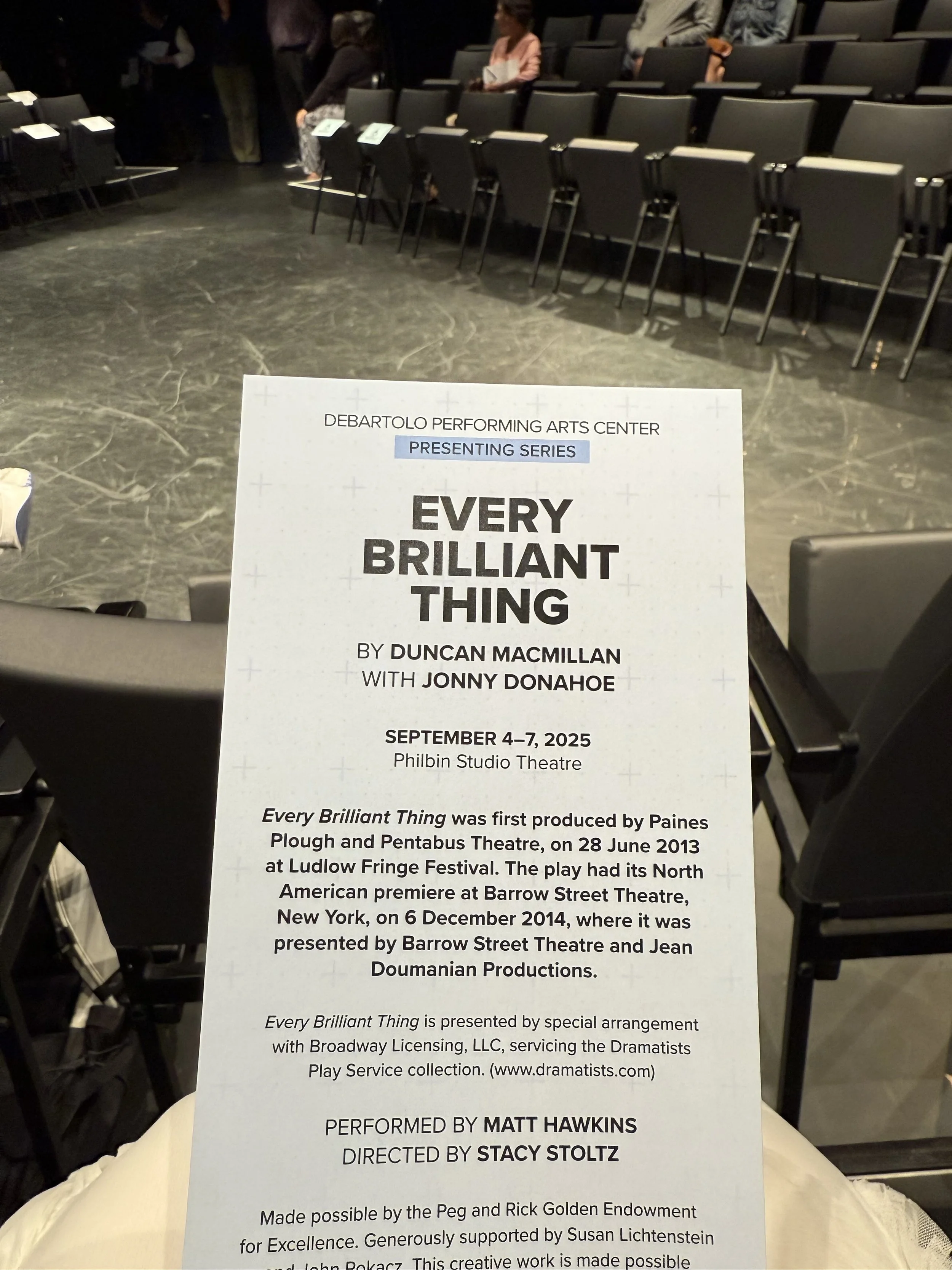 Every Brilliant Thing (September 2025-DeBartolo Performing Arts Center—Notre Dame)